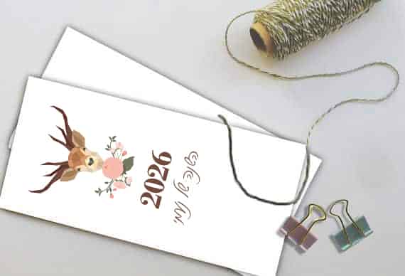 לוח שנה אישי בתוספת הקדשה וציון תאריכים מיוחדים – דגם איילים.