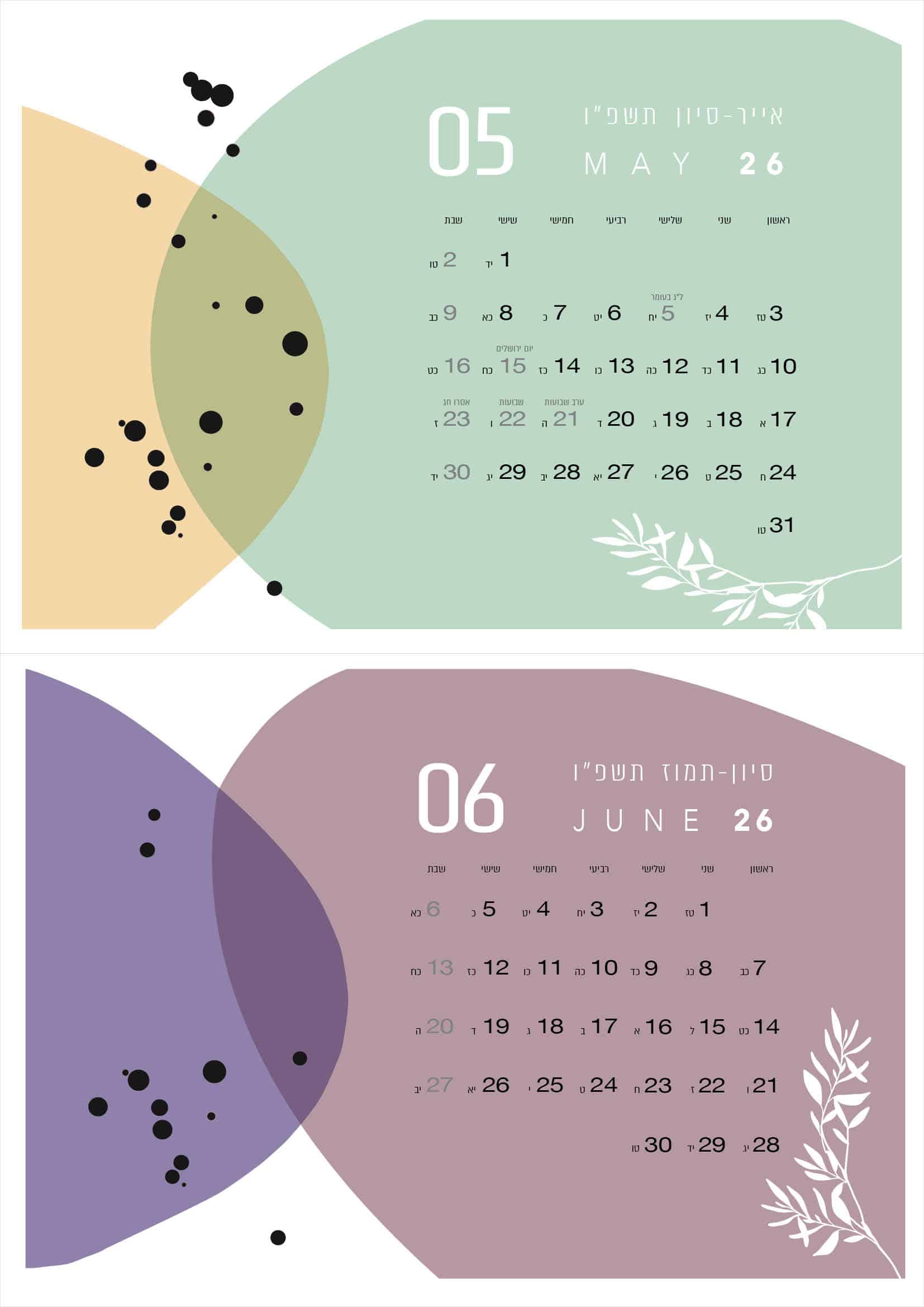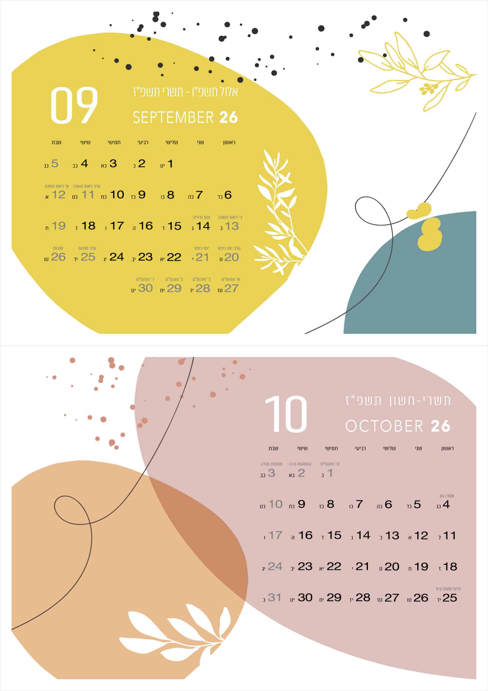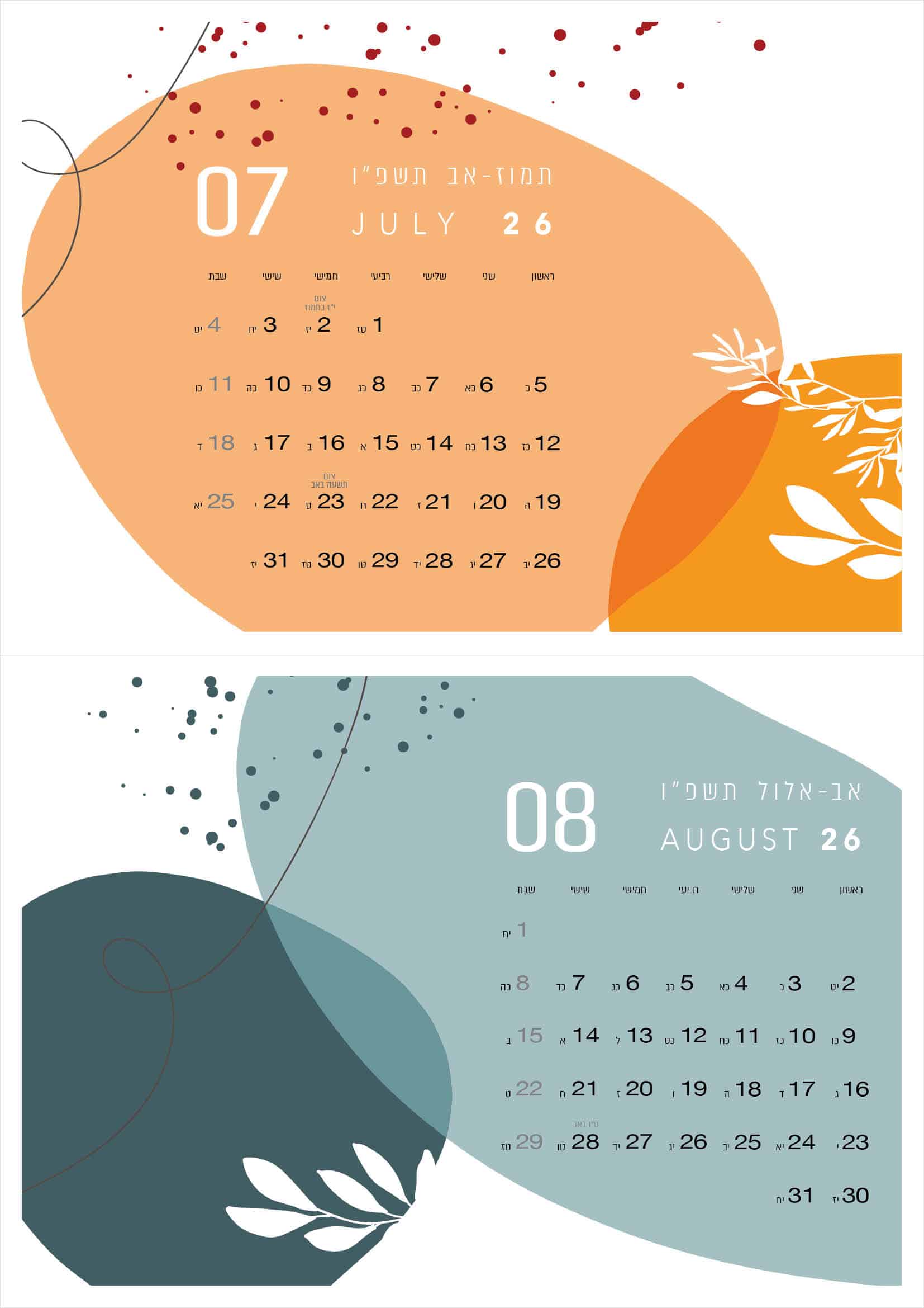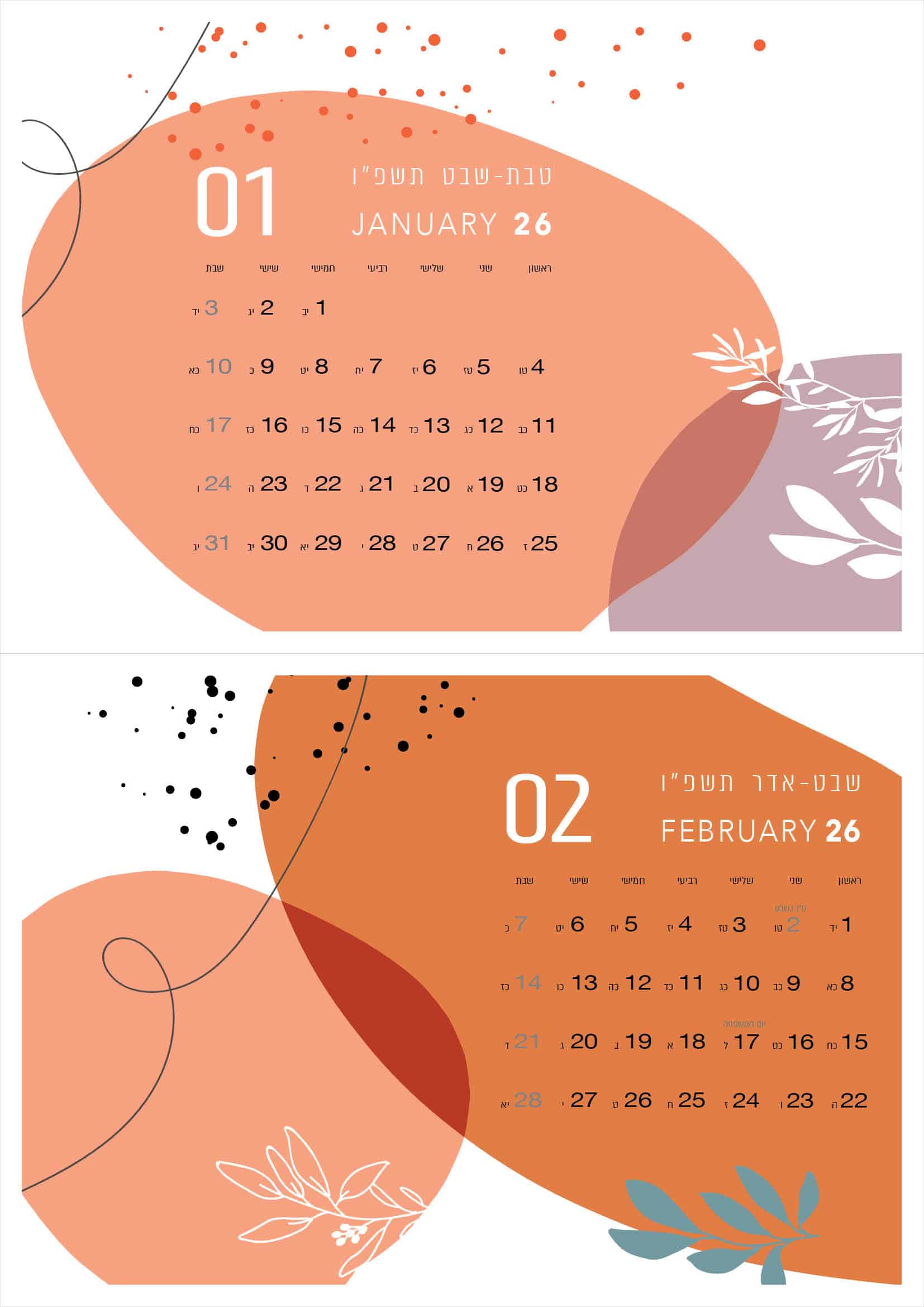 לוח שנה אישי – עיצוב אבסטרקטי צבעוני