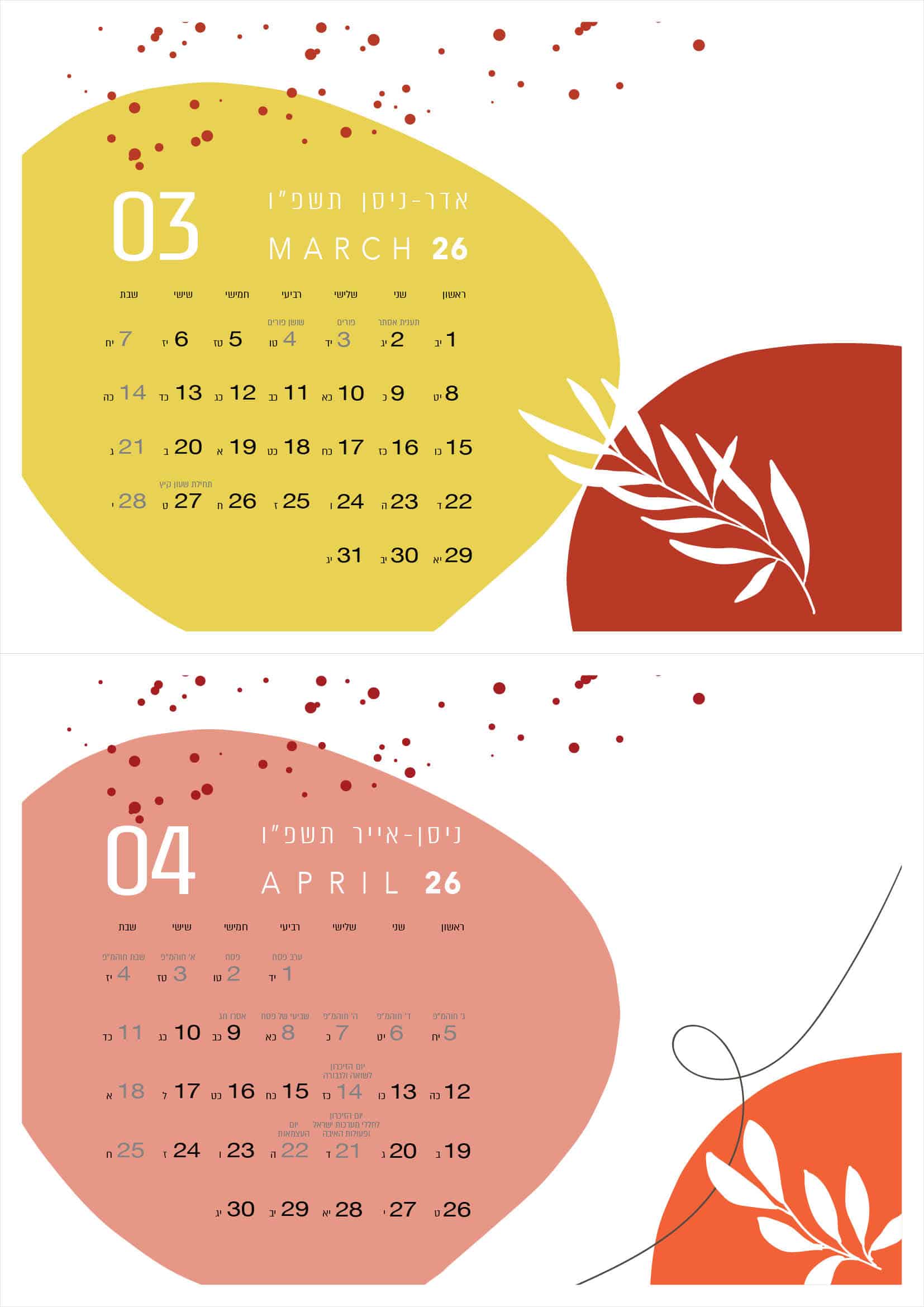 ניתן להוסיף שם והקדשה על החזית ולסמן תאריכים מיוחדים ומשמחים עבורכם בתוך הלוח עצמו באמצעות לבבות.