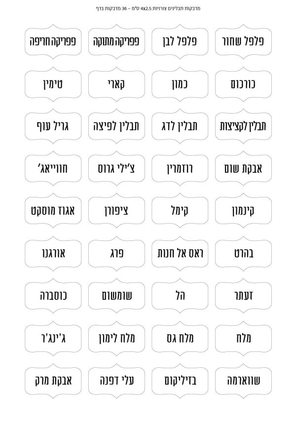 בגודל: 4/2.5 ס״מ – 36 מדבקות בדף A4