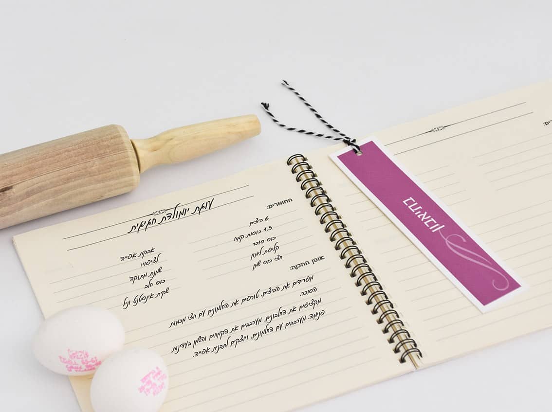 מחברת מתכונים בגודל 20/20 ס״מ, מעוצבת באופן אישי.