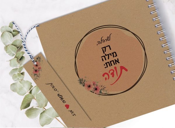 מחברת ״מחשבות טובות״ עם משפט השראה: “רק מילה אחת, תודה”.